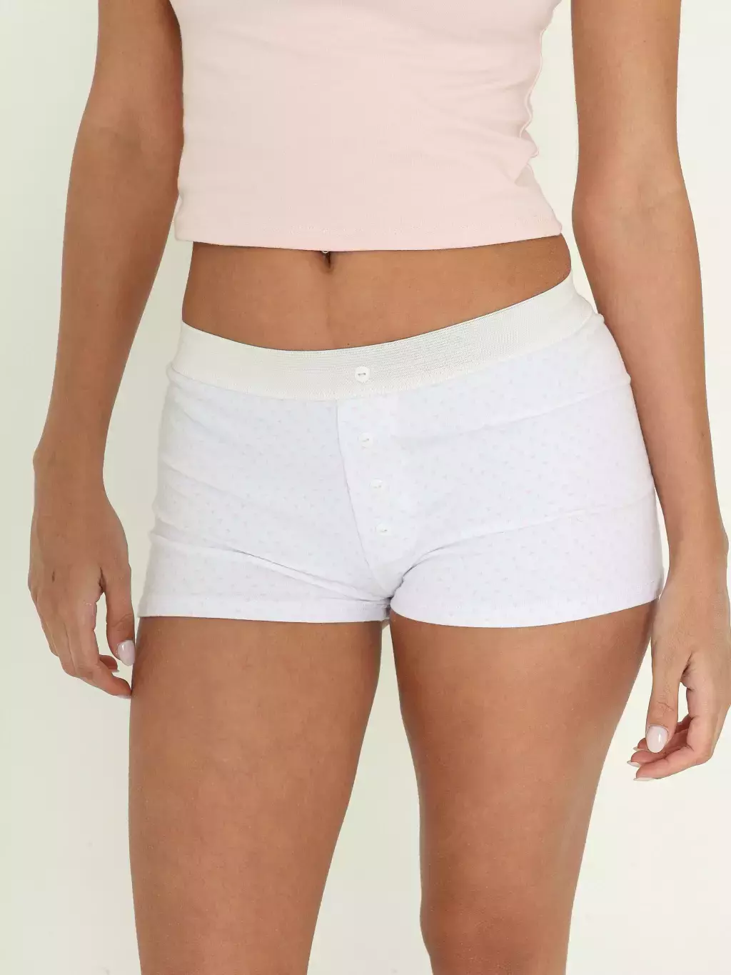 Short tipo boxer pijama con elástico en la cintura y falsa cartera con botones en el delantero.
