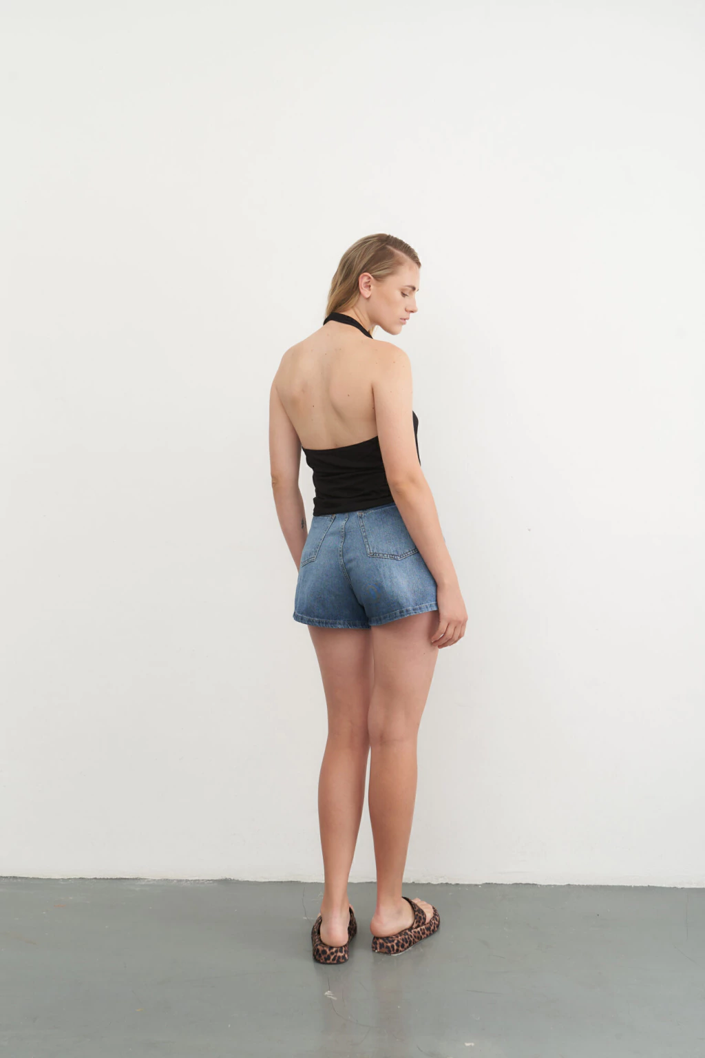 Top de morley viscosa con cuello halter. Modelo con espalda descubierta.